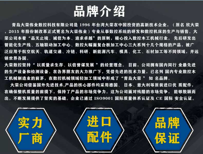 大荣DARON大型双龙门五轴加工中心大荣DARON大型双龙门五轴加工中心本着以客户为中心,提供全方位的服务支持,包括技术咨询、安装调试、操作培训、维修保养等,做好客户的强力后盾,确保客户生产无忧。